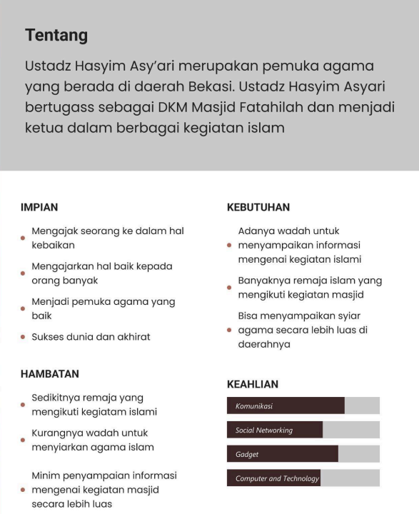 • Mengidentifikasi kebutuhan pengguna melalui wawancara, misalnya dengan generasi muda dan tokoh agama.