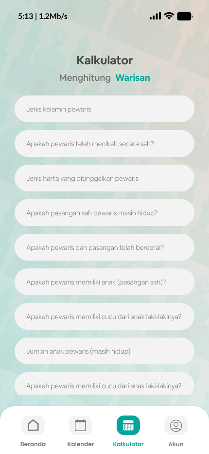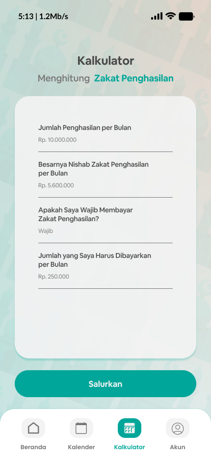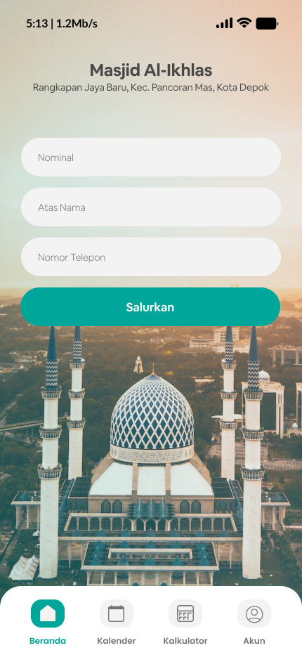 • Menghitung zakat dan warisan secara otomatis berdasarkan data input, kemudian dapat langsung disalurkan pada masjid yang dipilih.