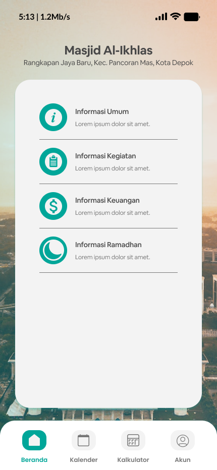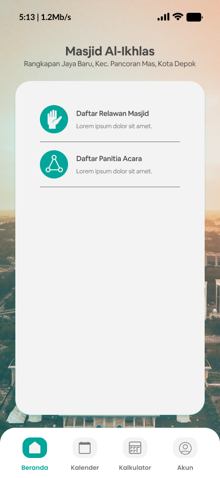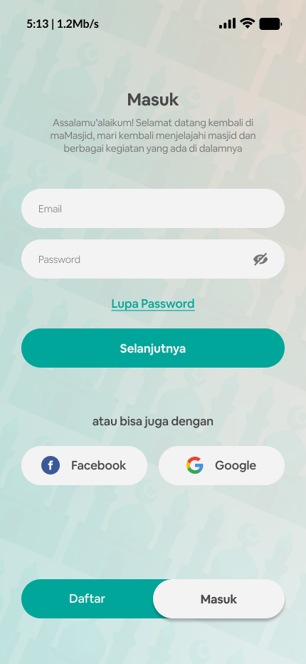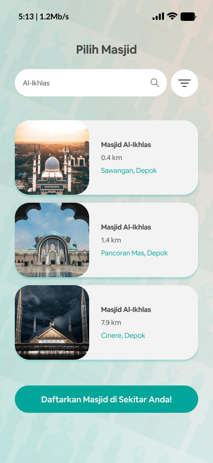 Approaching the masjid with technology, so that it can be more prosperous through mobile application design.